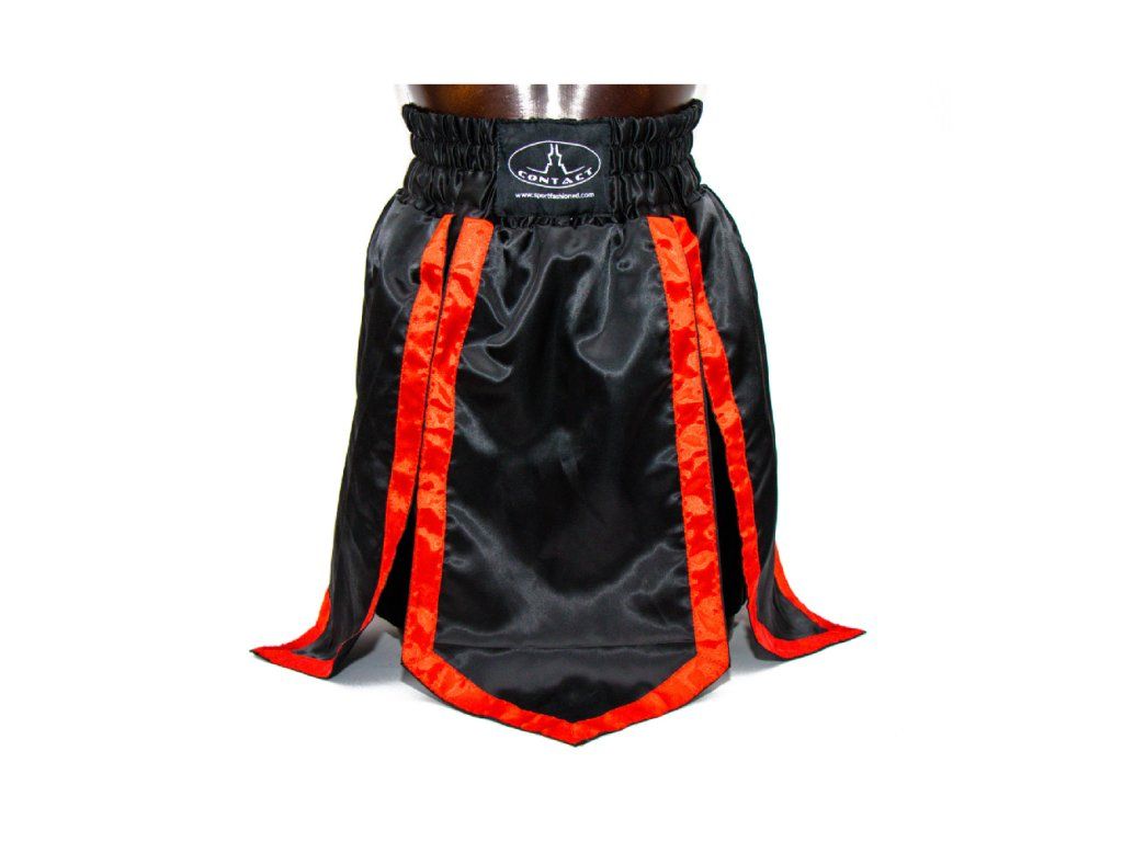 Thajské šortky CONTACT, čierne, červené pásy XL